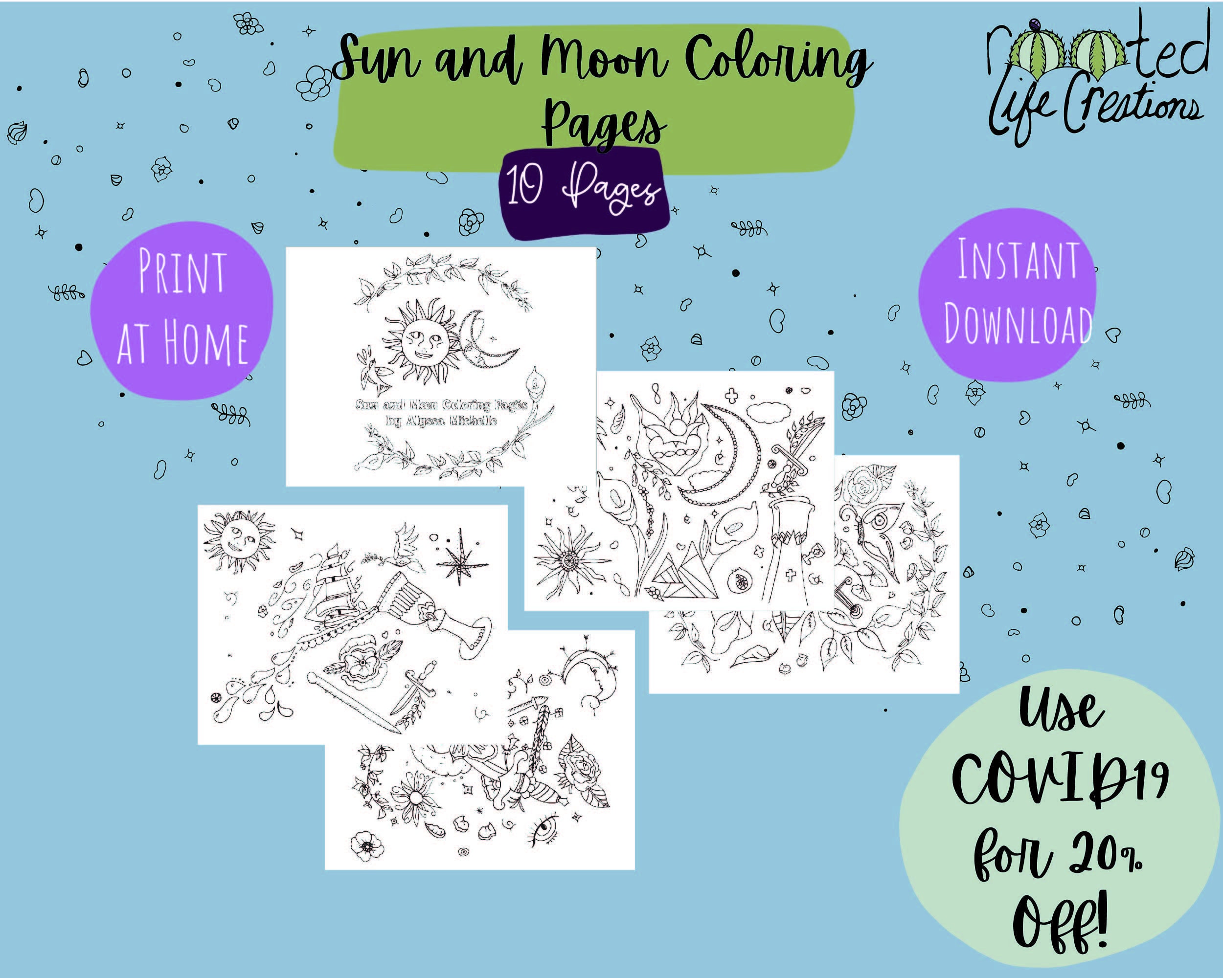 Sun And Moon Coloring Page Bundle Printable Etsy
